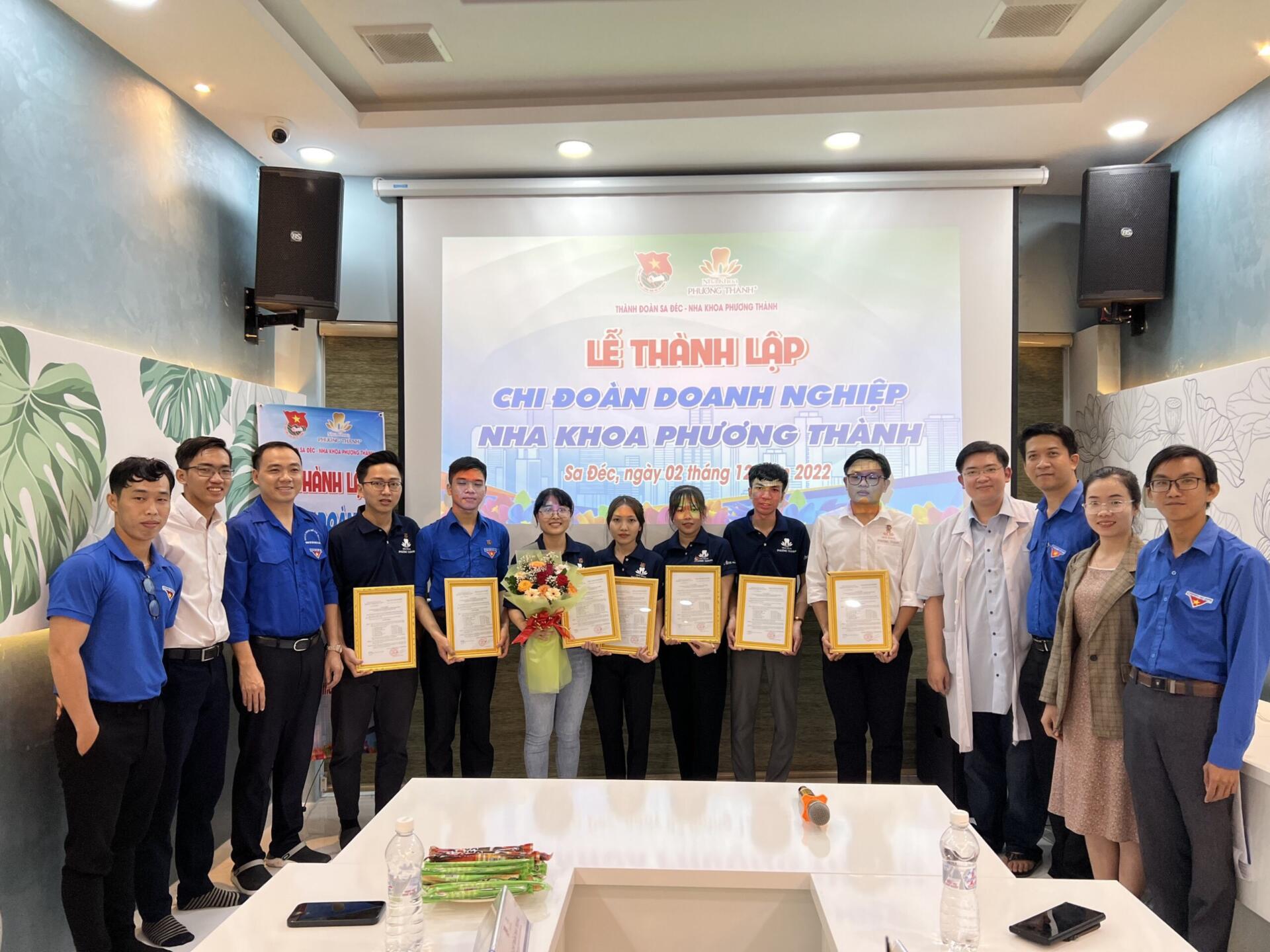 Chiều ngày 02/12/2022, tại hội trường Công ty TNHH MTV Nha khoa Phương Thành (số 483, đường Hùng Vương , Khóm 2, Phường 1. TP Sa Đéc, tỉnh Đồng Tháp). Đoàn Thanh niên Cộng sản Hồ Chí Minh thành phố Sa Đéc đã tổ chức lễ công bố Quyết định thành lập Chi đoàn Công ty TNHH MTV Nha Khoa Phương Thành.