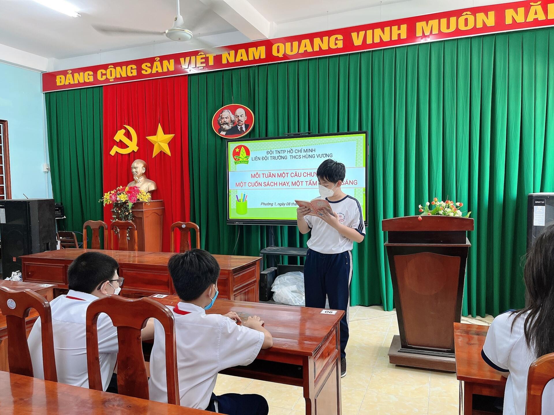 Thực hiện chương trình công tác Đội và phong trào thanh thiếu nhi năm học 2022-2023, Hội đồng Đội thành phố đã chỉ đạo, triển khai đến 100% Liên đội trên địa bàn tổ chức sinh hoạt chuyên đề “Mỗi tuần một câu chuyện đẹp, một cuốn sách hay, một tấm gương sáng”.